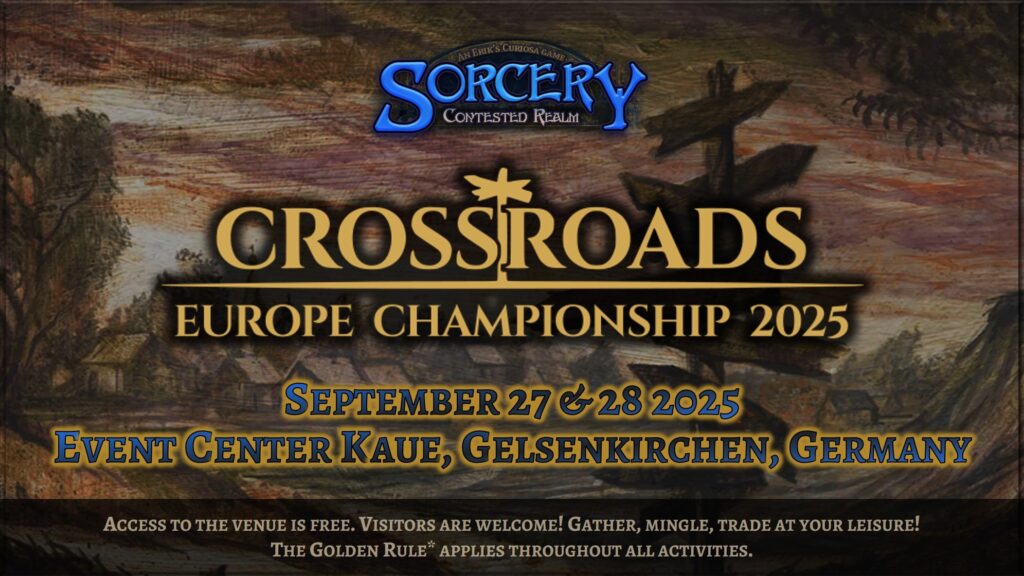 The Trolls of the Realm, Richard and Ron, will provide you with Sorcery singles. If you would like to place an advance order, visit their website https://trollsoftherealm.com/ now and secure your deal at a 5% discount using the coupon code „crossroads“ when placing your order. All discounted orders must be picked at the Crossroads event!